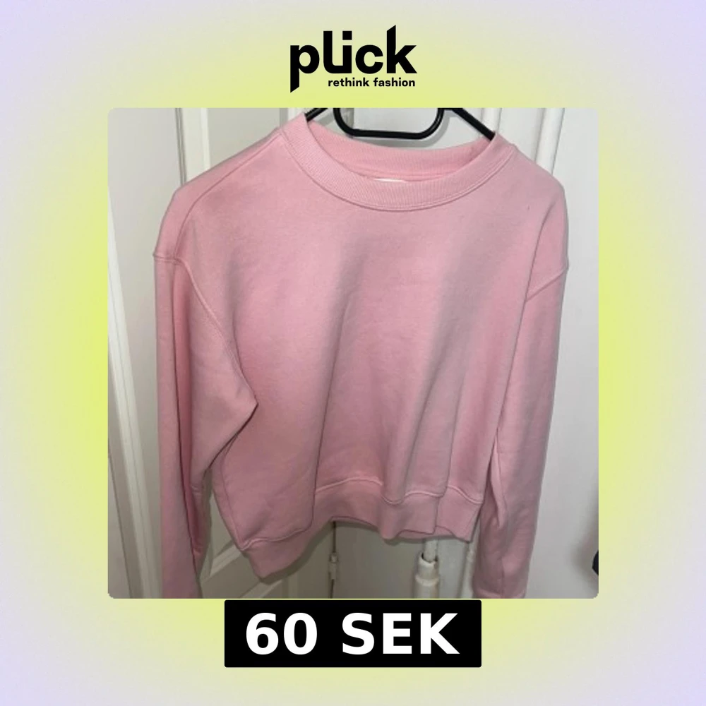 Säljer en mysig rosa sweatshirt med rund hals och långa ärmar. Perfekt för en avslappnad stil. Tröjan har ribbade muddar vid ärmslut och nederkant.