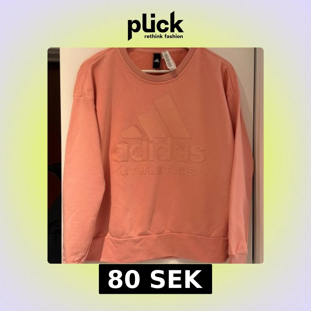 Säljer en snygg rosa/persikofärgad sweatshirt från Adidas Athletics. Tröjan har en stor logga på framsidan och långa ärmar. Perfekt för en sportig och avslappnad stil. Passar bra till både jeans och träningsbyxor.