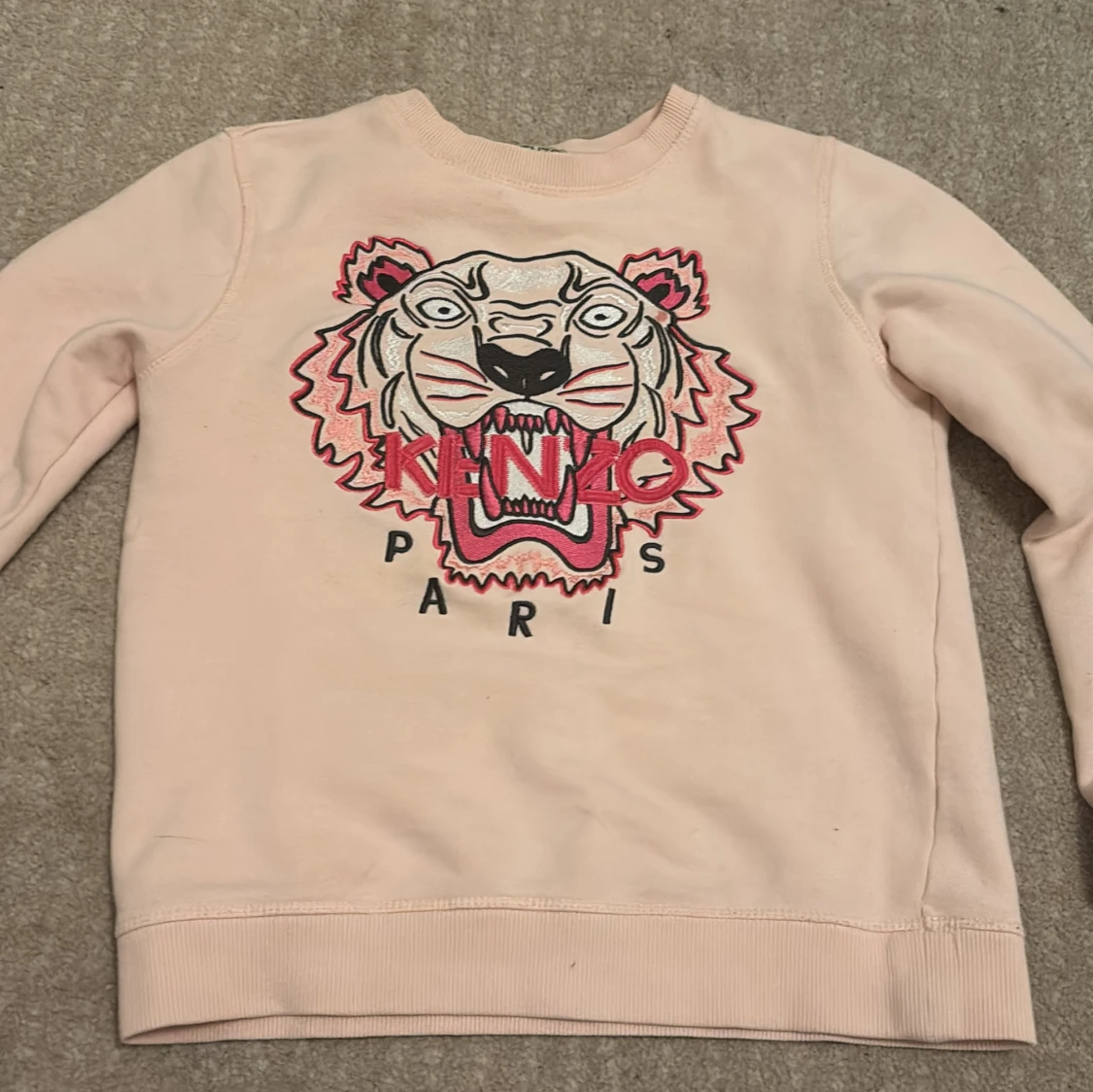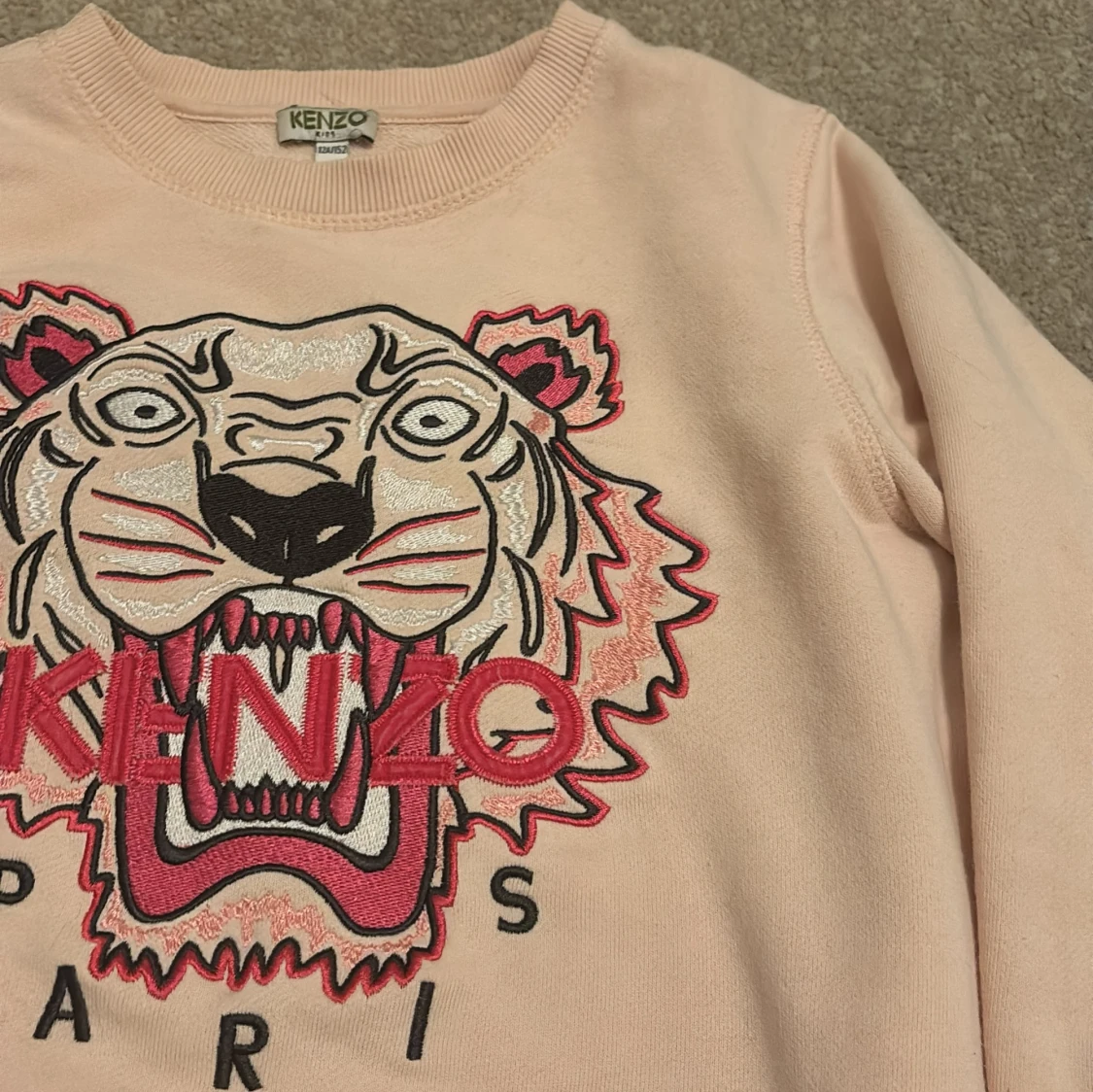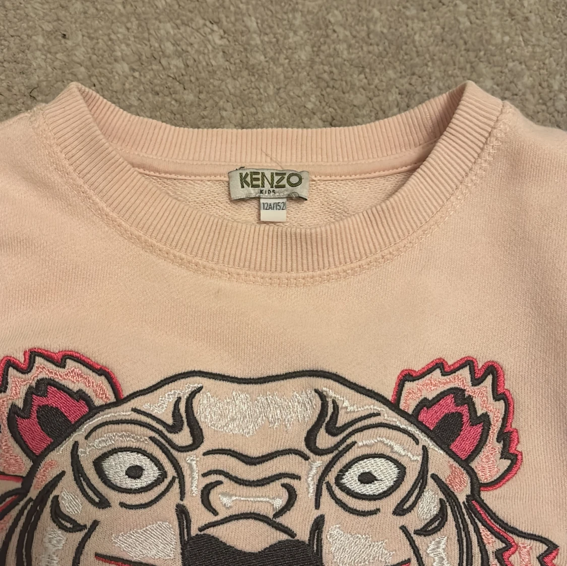 Säljer en snygg rosa sweatshirt från Kenzo med ett coolt tigertryck och texten 'Kenzo Paris' på framsidan. Tröjan har långa ärmar och en rund halsringning. Perfekt för en trendig look! 🐯