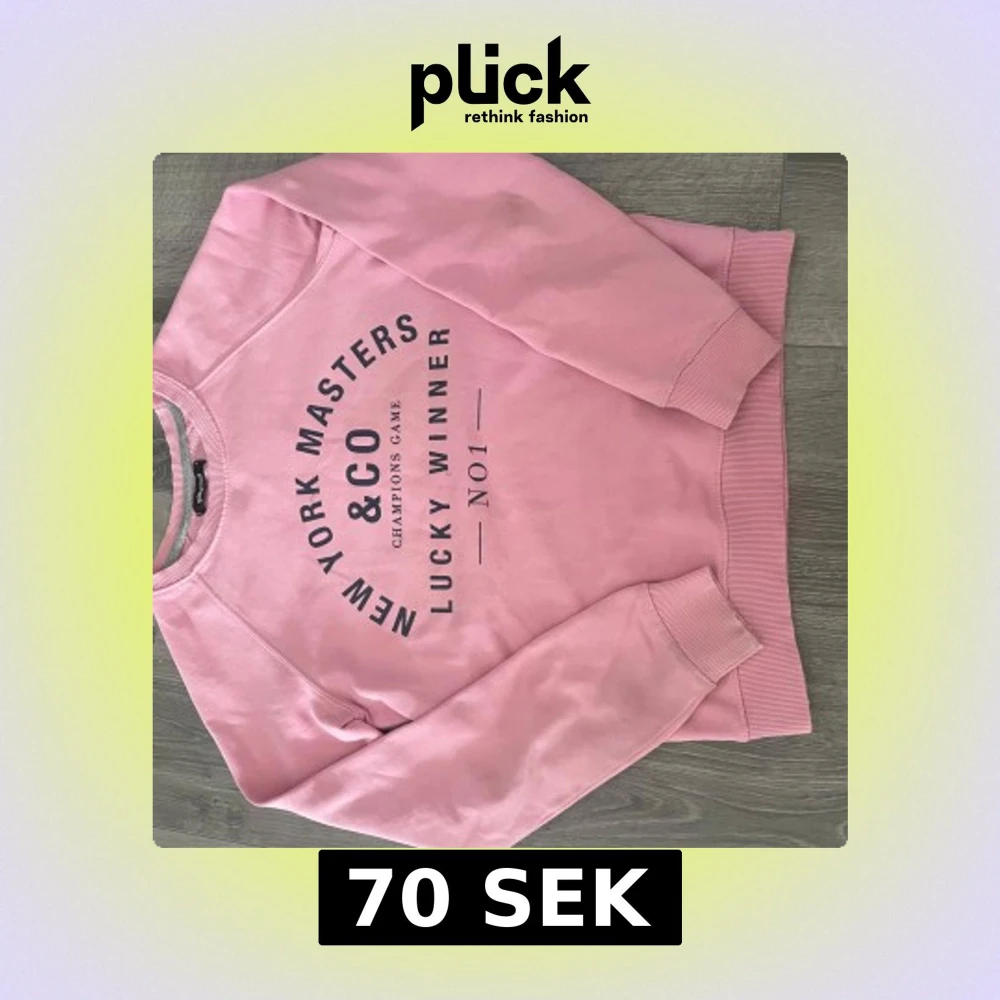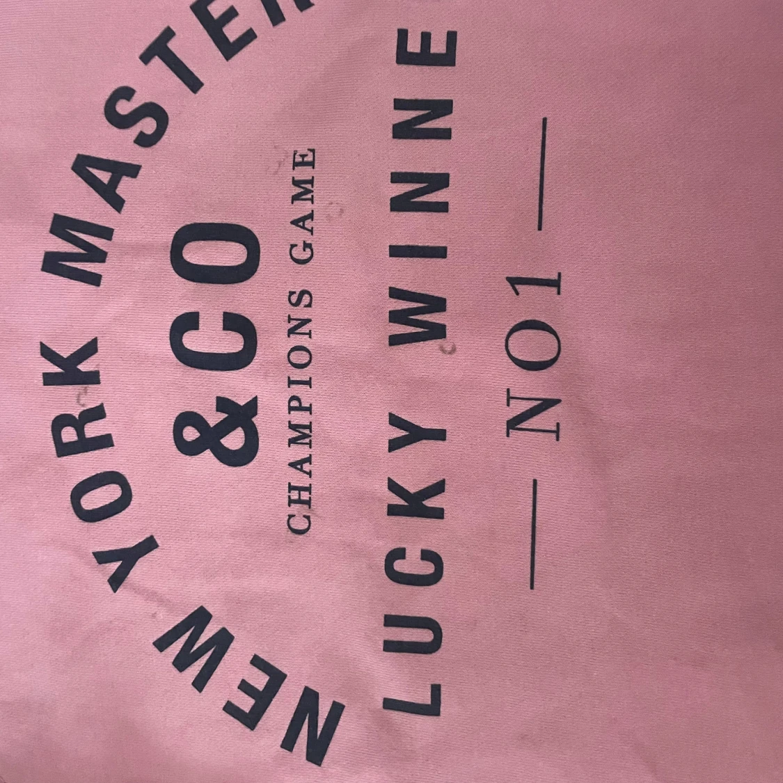 Rosa sweatshirt med svart tryck framtill där det står 'New York Masters & Co Lucky Winner No1'. Tröjan har rund hals, långa ärmar och ribbade muddar vid ärmslut och nederkant. Perfekt för en chill och avslappnad stil.