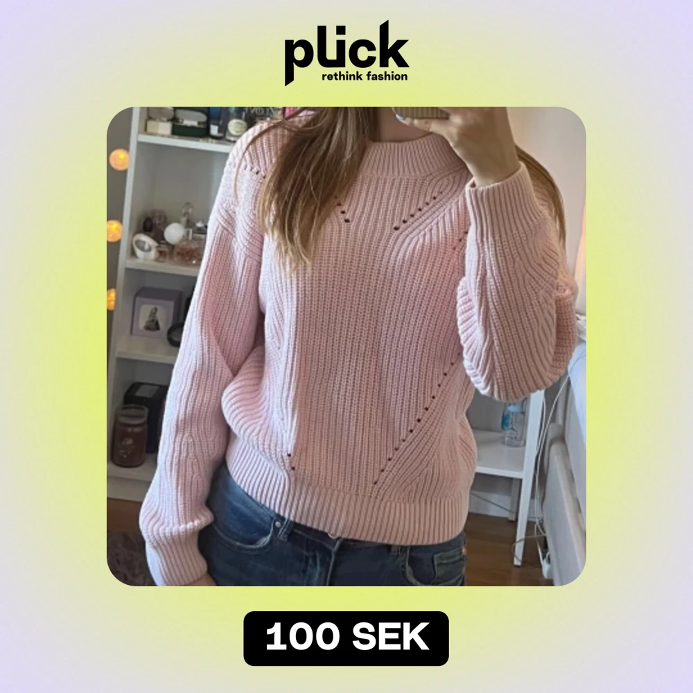 Supergullig stickad rosa tröja💞Färgen ser ut som på första bilden, på andra bilden ser den nästan beige ut men den är rosa💗