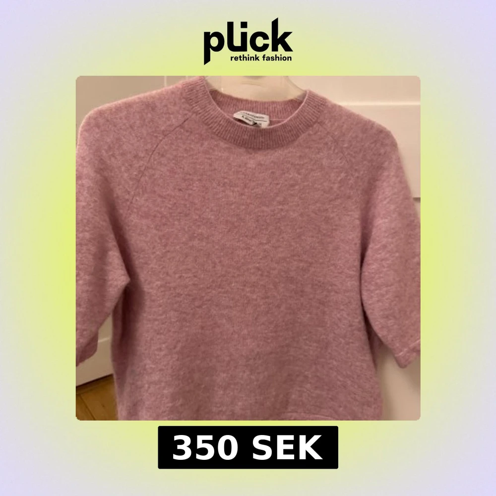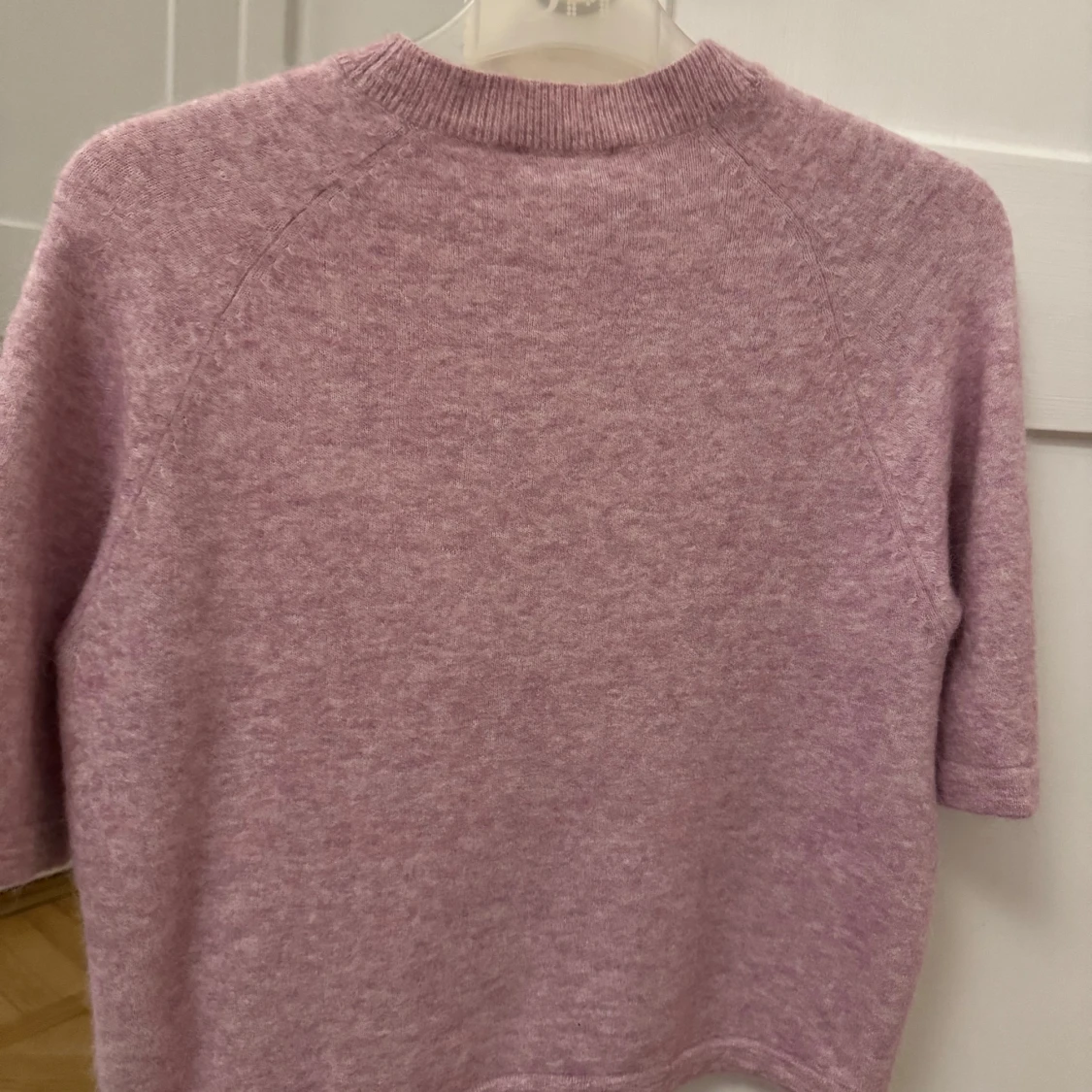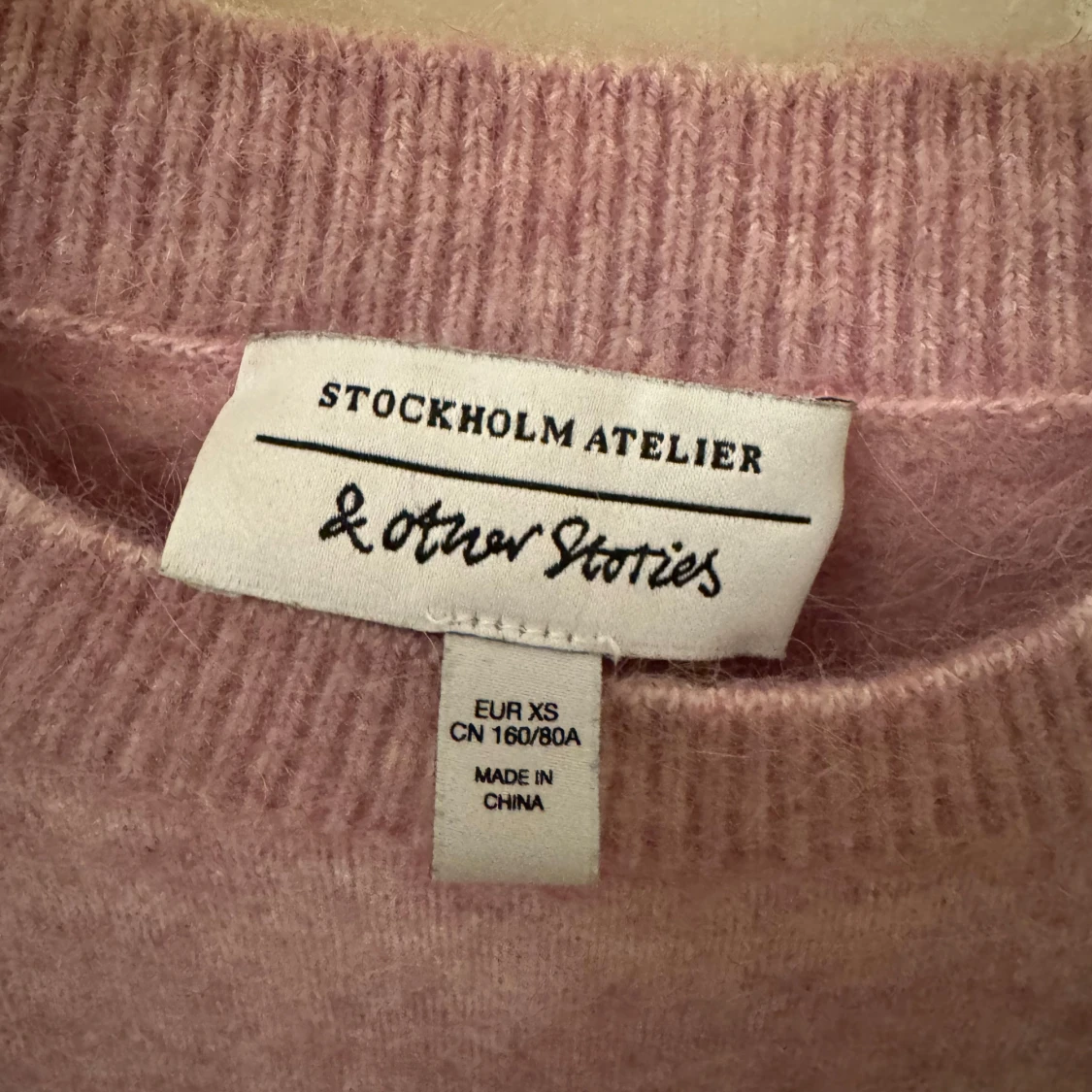 Säljer en mjuk och stilren rosa tröja från & Other Stories. Tröjan har en rund halsringning och korta ärmar, perfekt för en avslappnad look.