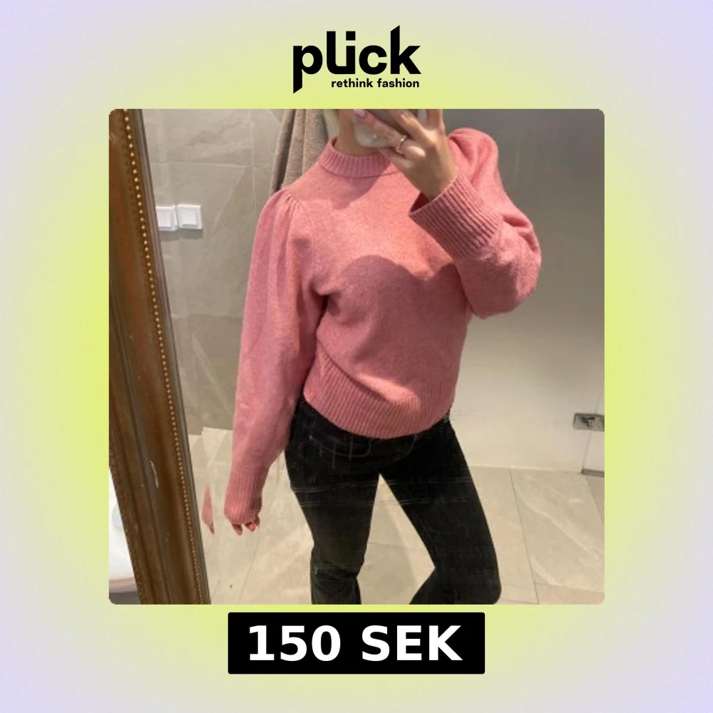 Säljer en söt rosa stickad tröja med långa ärmar och ribbade muddar. Perfekt för kyligare dagar och ger en mysig känsla. Passar bra till jeans eller kjol för en avslappnad look.