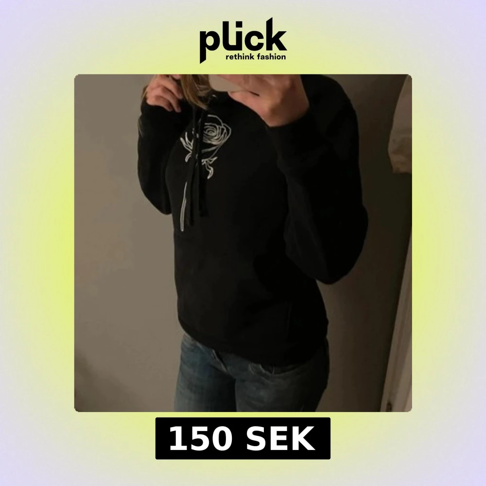 Svart hoodie från The Cool Elephant med vit broderad ros på bröstet. Tröjan har huva med snörning och en klassisk känguruficka framtill. Mjuk insida och långärmad modell💕