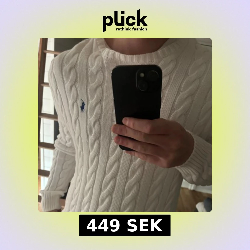 Vit kabelstickad tröja från Polo Ralph Lauren. Tröjan har rund halsringning, ribbade muddar och är långärmad. Perfekt för hösten! Köpt ifrån Åhléns Sthlm, för 2395kr. Utmärkt skick - använd endast nån gång då den ej passar mig riktigt! Kvitto finns via Kivra om önskas.