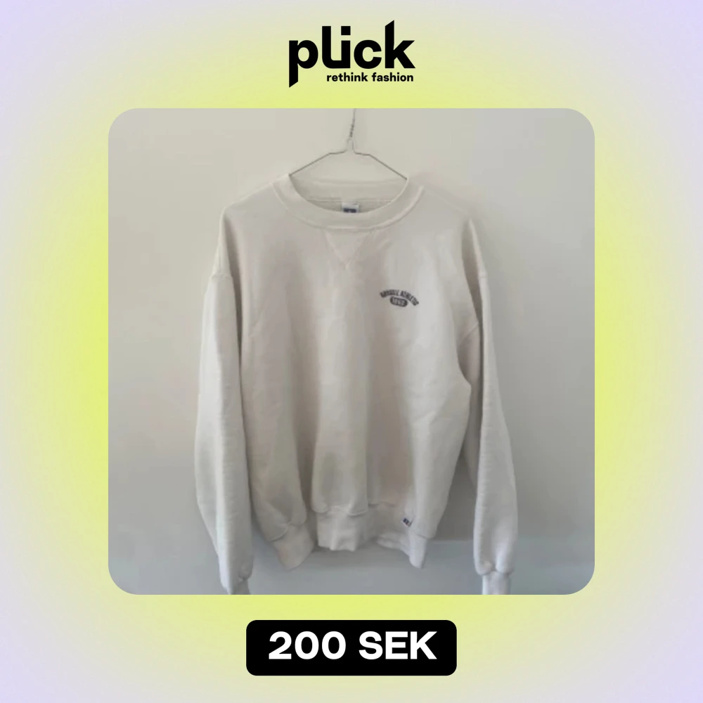 Säljer en vit Russell athletic tröja i storlek M (sitter något mindre). Bra skick, använd men inga flaws eller liknande. Troligtvis Russell från 90-talet så väldigt mjukt bomullstyg.