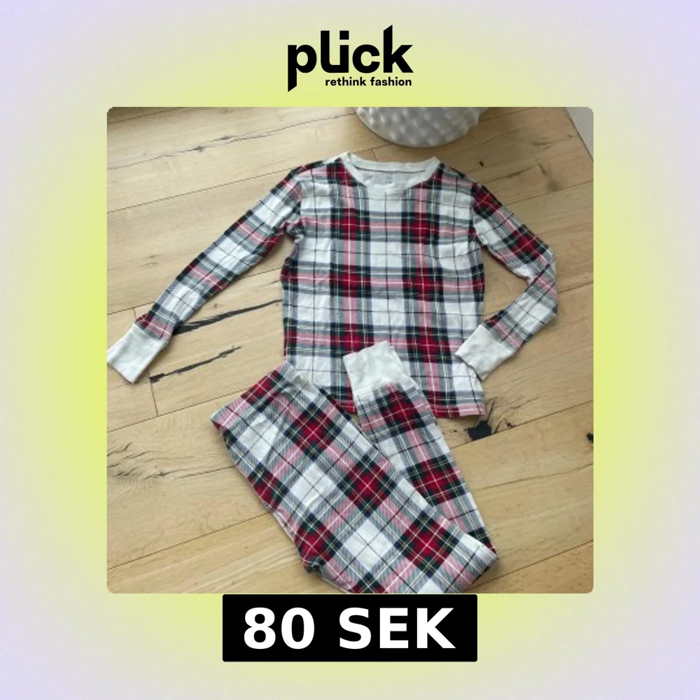 Snygg långärmad pyjamas från GAP i röd, vit och blå rutig design. Tillverkad i mjuk ekologisk bomull, perfekt för mysiga dagar. Tröjan har rund halsringning och breda muddar vid ärmsluten för extra komfort. Köpt på Zalando