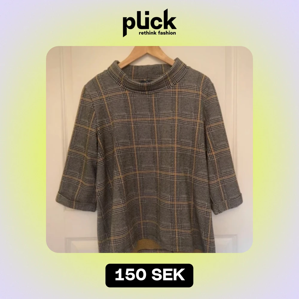 Toppen är i bra skick, trekvartsärmad, rutig och i storlek M