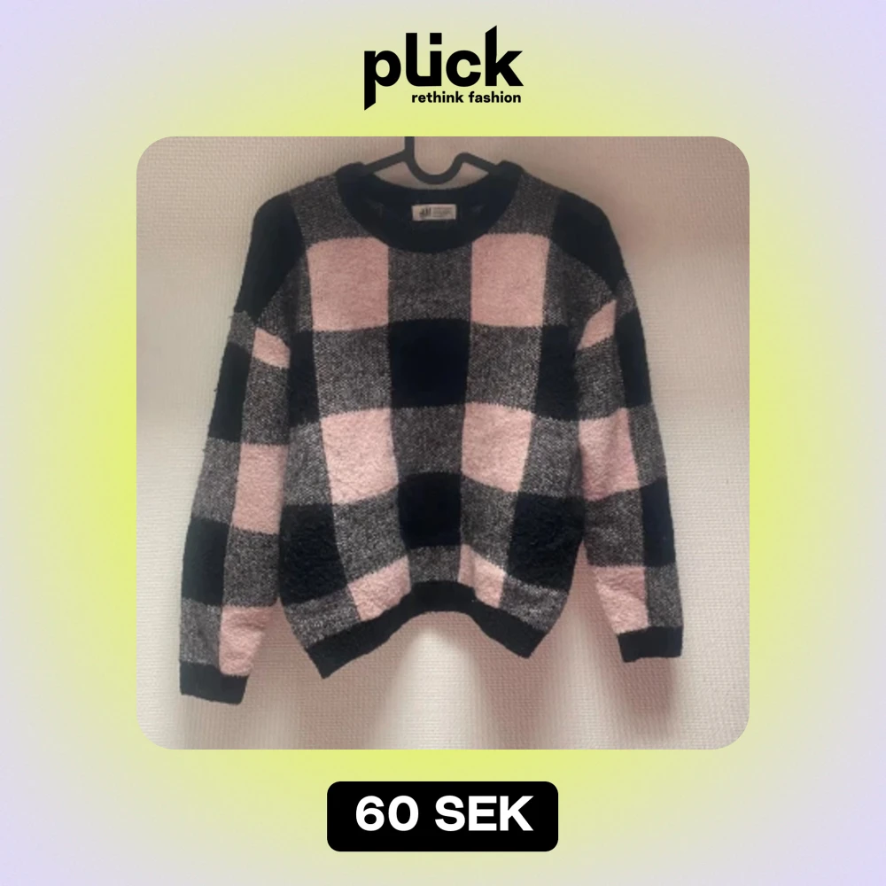 En bekväm rutig tröja från H&M med ett mönster i svart, grått och rosa. Tröjan har långa ärmar och ribbstickade muddar vid ärmslut och nederkant.
