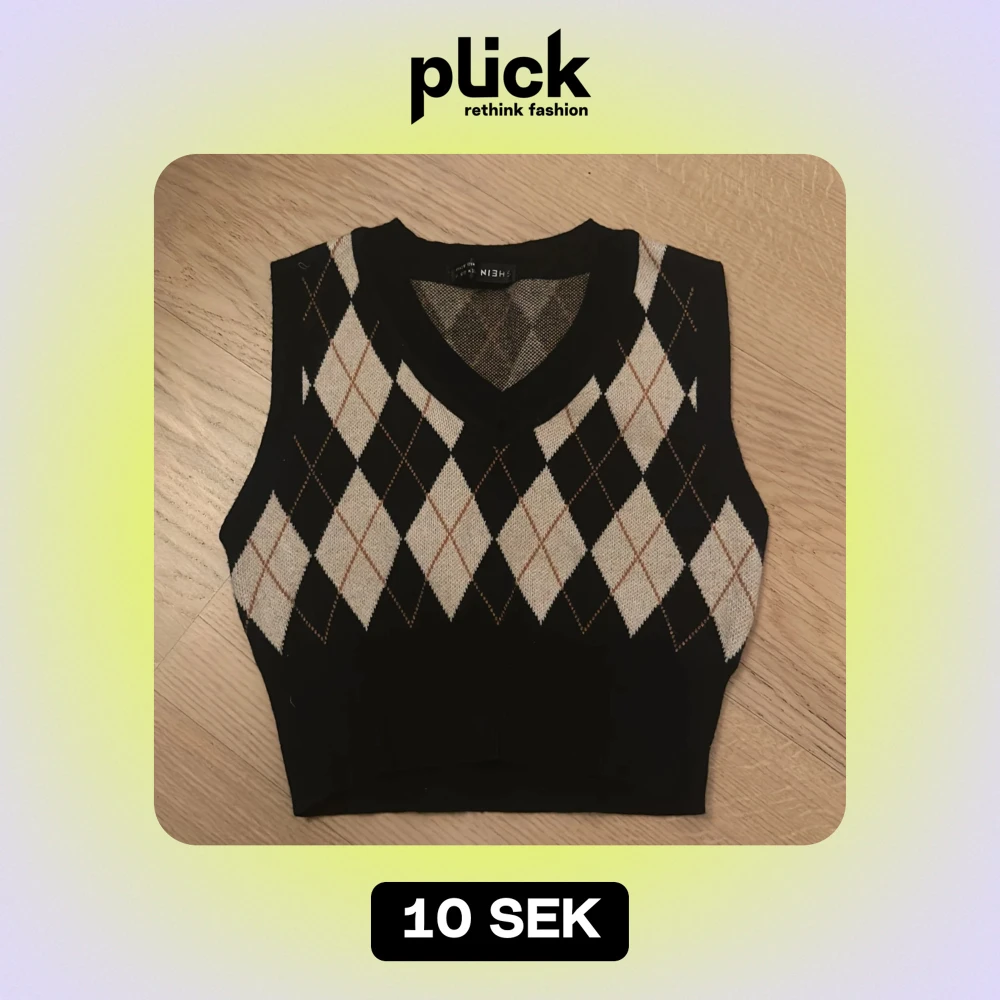 Snygg svart väst från Shein med klassiskt rutigt mönster i vitt och beige. Den har en v-ringad design och är perfekt för lager-på-lager-stil. Passar både till vardags och festliga tillfällen. Perfekt för höst och vår!
