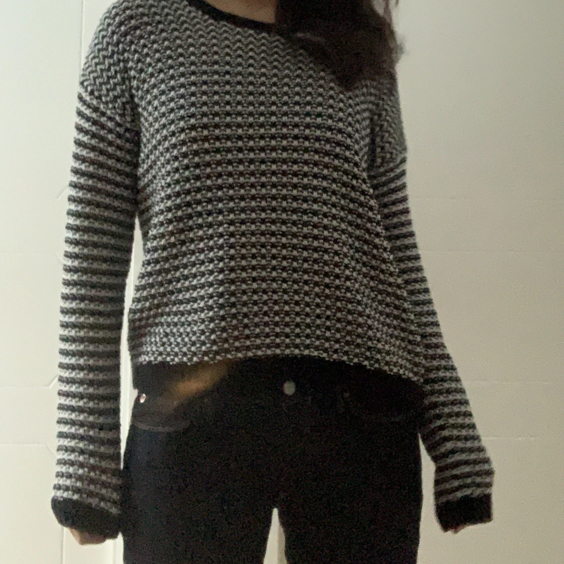 En jättefin svart, vit rutig tröja! Storlek S. Köparen står för frakten!