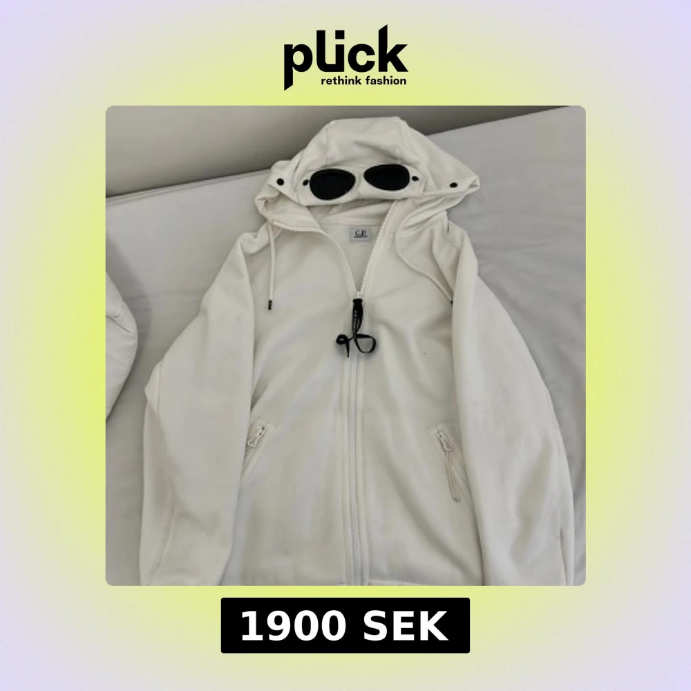 Säljer en vit kofta från C.P. Company med unik design. Koftan har en huva med inbyggda glasögon och dragkedja framtill. Perfekt för en stilren look med en twist. Köpt i nk i Göteborg använt den 3 gånger bara