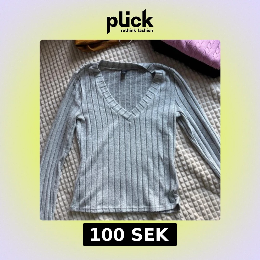 Grå långärmad tröja från Shein med v-ringning och ribbat mönster. Tröjan är i mjukt material och har en slim passform som sitter snyggt på kroppen. Pris går att diskutera.