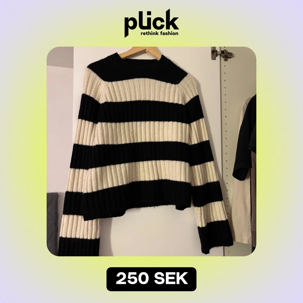 Säljer en superfin randig tröja i svart och vit. Den är ribbad och har långa ärmar, perfekt för höst och vinter. Tröjan är croppad och ger en trendig look. Passar perfekt till både jeans och kjol! Den är o storlek S/m
