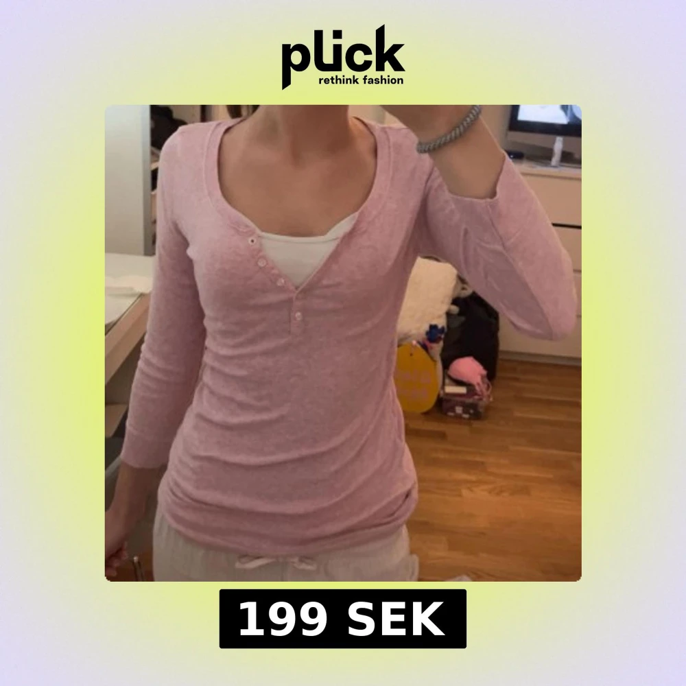 Säljer en ljusrosa långärmad topp med v-ringning och små knappar framtill. Snygg att bära som den är eller över ett linne. Knappt andvänd. 2000-tal aktig. 🥰