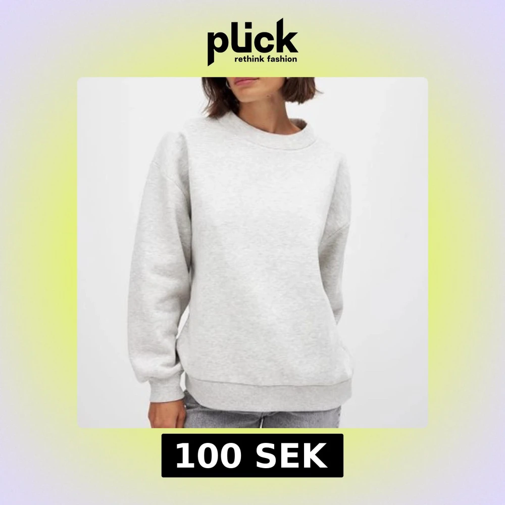 Enkel och stilren ljusgrå sweatshirt med rund hals och avslappnad oversized passform, jag har använt den typ 2 gånger. Så den är i nyskick! Tröjan har långa ärmar och breda muddar. Länk till plagget där jag köpte det om du vill kika på fler detaljer: https://www.na-kd.com/sv/produkter/high-neck-detail-sweatshirt-grey-melange-1100-010094-0138
