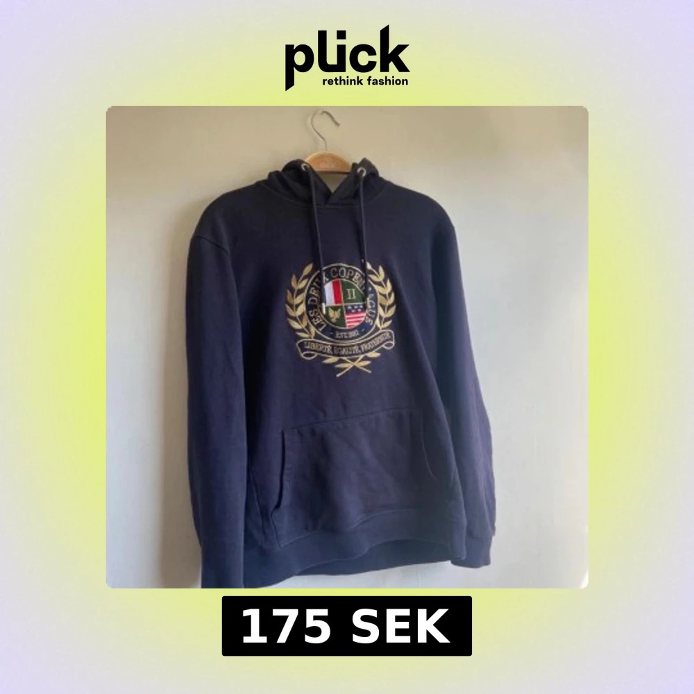 Snygg mörkblå hoodie från Les Deux med broderad logga och emblem på bröstet. Tröjan har huva med snörning och en stor magficka. Perfekt för dig som gillar preppy stil och vill ha något bekvämt och stilrent.