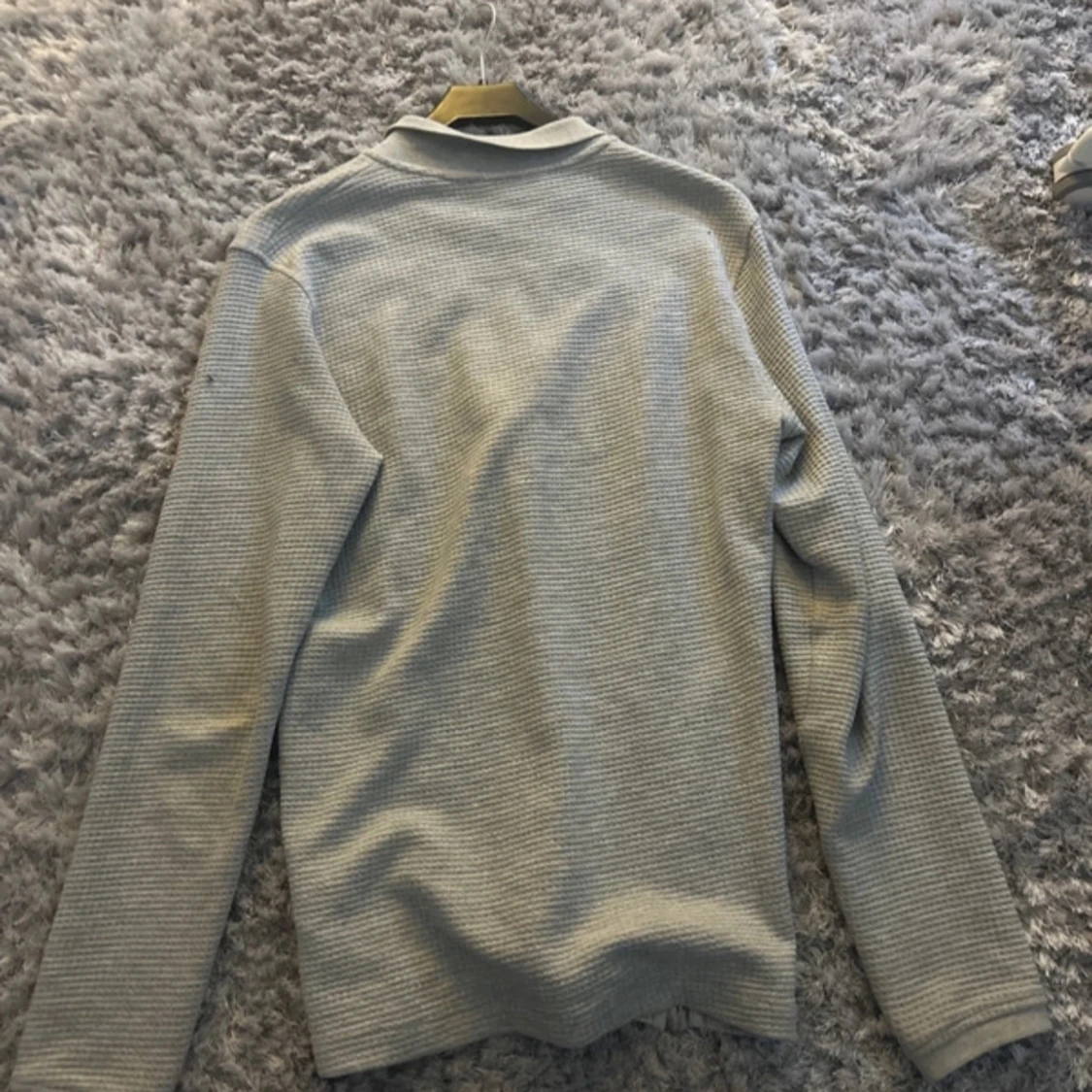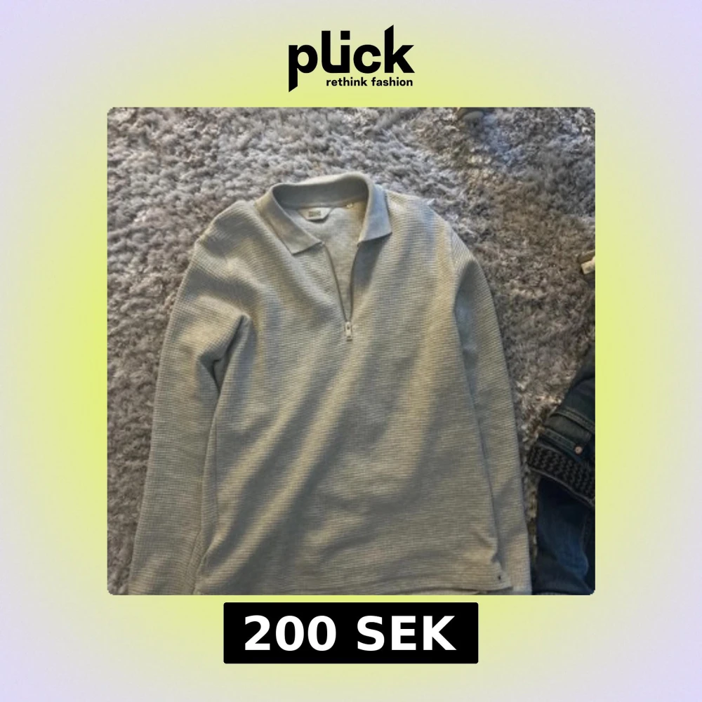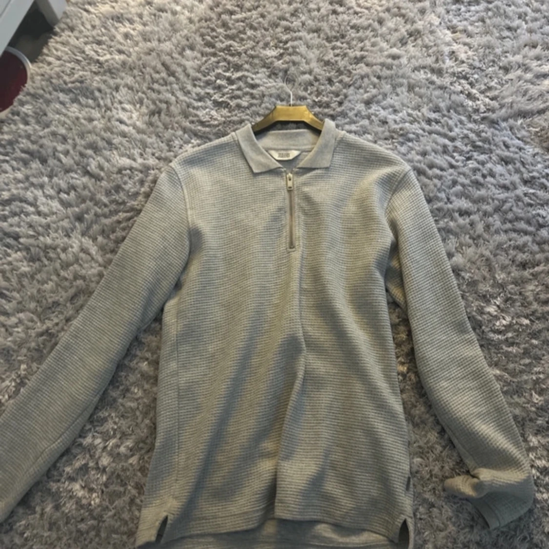 Säljer en stilren grå långärmad tröja med dragkedja vid halsen. Tröjan har en klassisk krage och är perfekt för en avslappnad look. Den är i en mjuk och bekväm kvalitet. Har inga defekter och är som helt ny