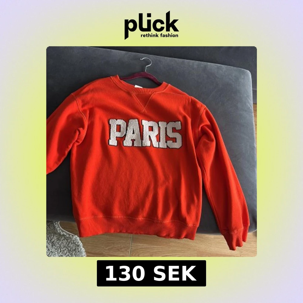 Cool orange sweatshirt med stort vitt PARIS-tryck på bröstet. Klassisk rund halsringning och långa ärmar. Mjuk och skön bomullskänsla.