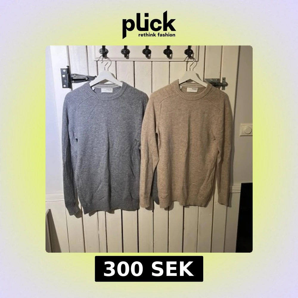 Två stilrena stickade tröjor från Selected Homme i grått och beige. Båda har rund halsringning, ribbade muddar och lång ärm. Perfekta för lager-på-lager och chill höst- eller vinterstil. Snygga att matcha med jeans eller chinos. Båda för 300