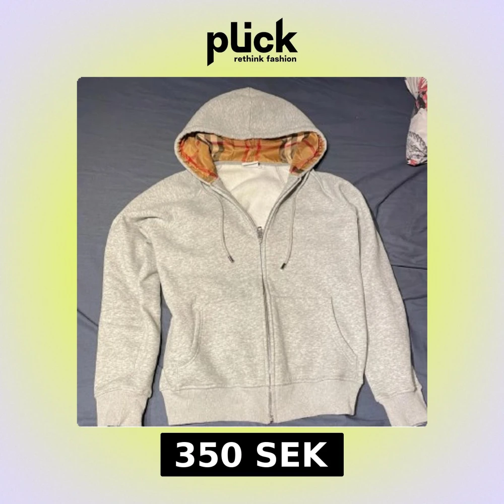 Säljer en grå hoodie med klassiskt rutigt foder i huvan. Tröjan har snörning vid huvan, två fickor fram och hel dragkedja. Perfekt för dig som vill ha en stilren och lyxig look med en touch av Burberrys ikoniska mönster.