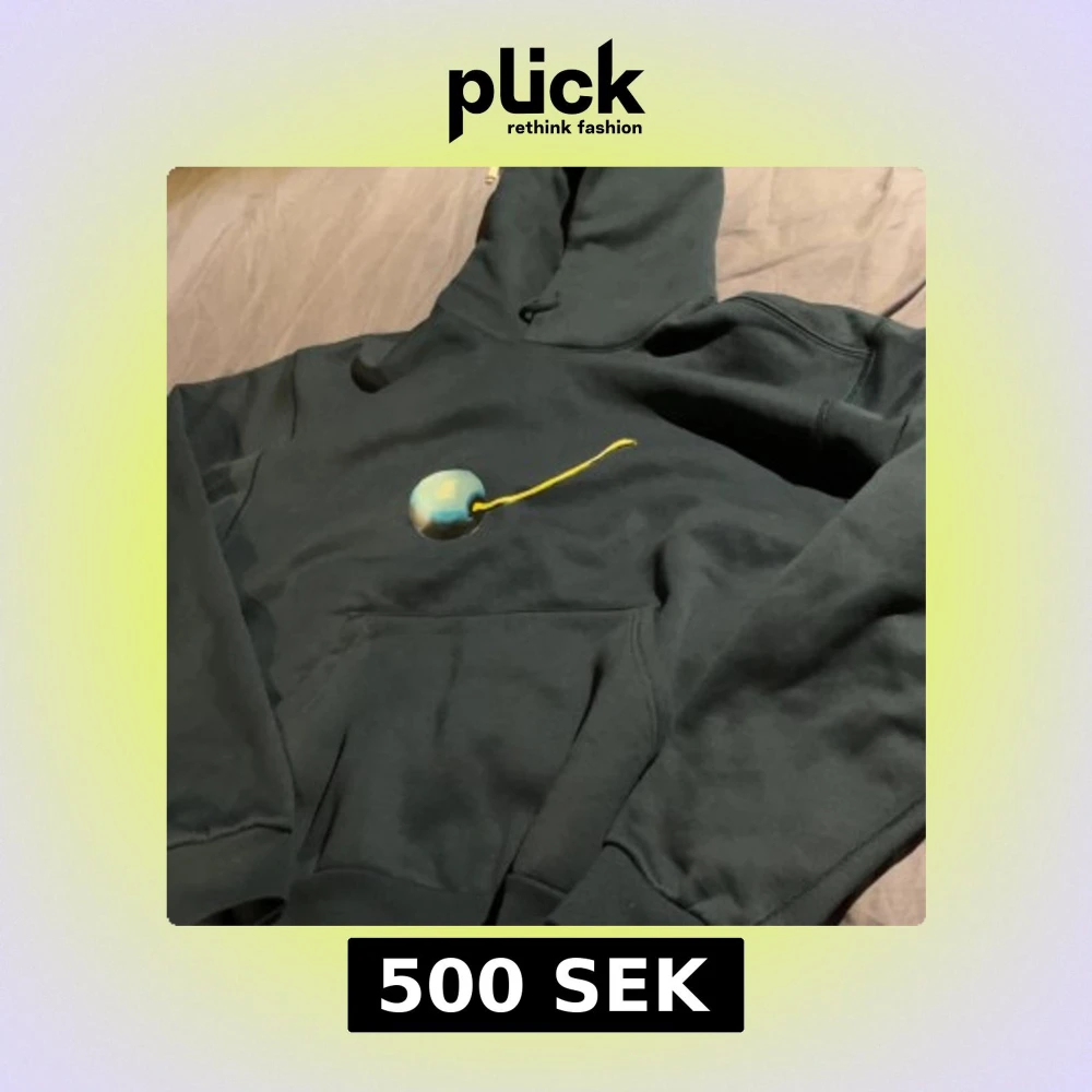 Svart hoodie från Nike SB med en stor ficka framtill och huva. På bröstet finns ett coolt print med en rund blågrön boll och gul linje. Liten Nike SB-logga på ärmen. Perfekt för dig som gillar streetwear och vill ha något unikt.