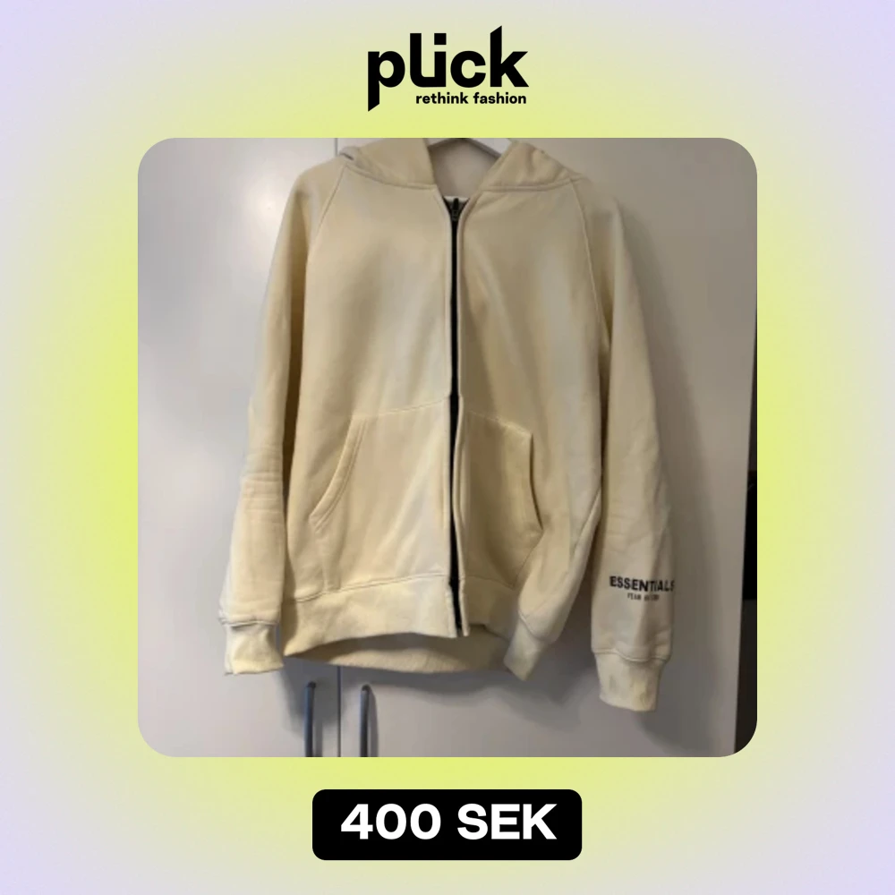 Säljer en supermjuk och stilren beige hoodie från Essentials Fear of God. Den har en dragkedja framtill. Perfekt för en avslappnad look! Nyskick! För fler frågor hör av dig! Passar storleksmässigt M också!