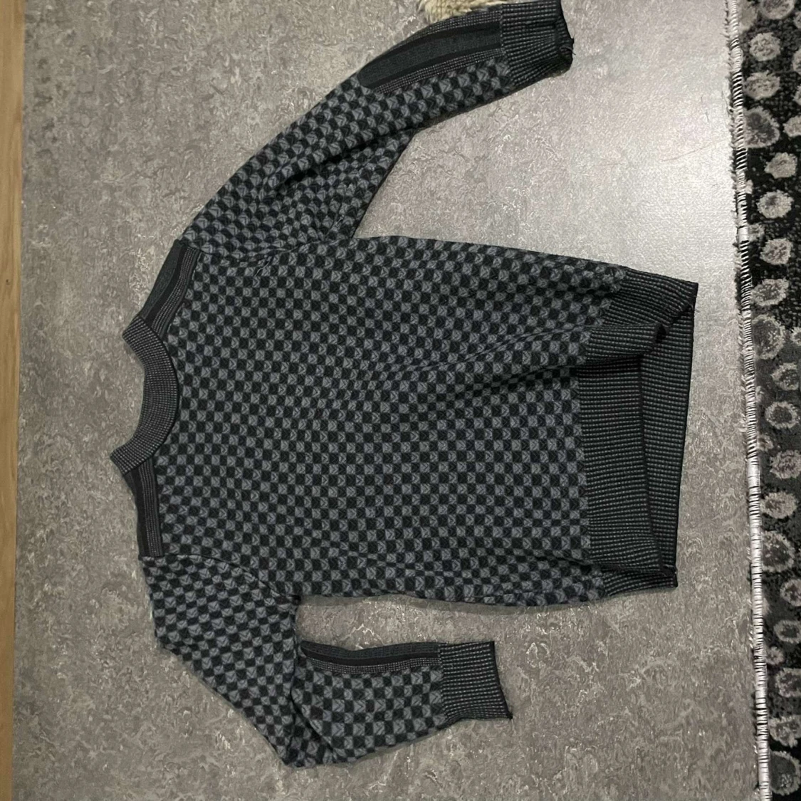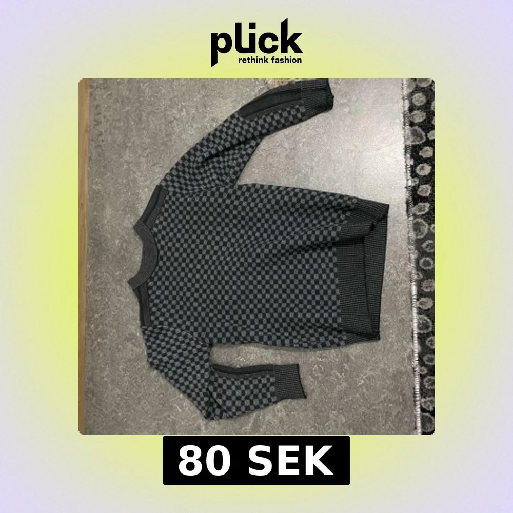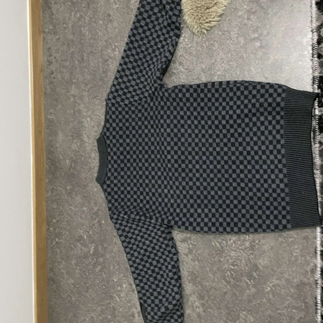 Snygg grå och svart rutig tröja med långa ärmar och ribbade muddar. Perfekt för kyligare dagar med sitt stilrena mönster.