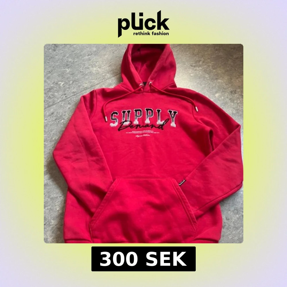 Röd hoodie från Supply & Demand med broderad text på bröstet. Klassisk känguruficka, snörning i huvan och ribbade muddar. Perfekt för dig som gillar streetwear och vill ha en skön och snygg tröja till vardags.