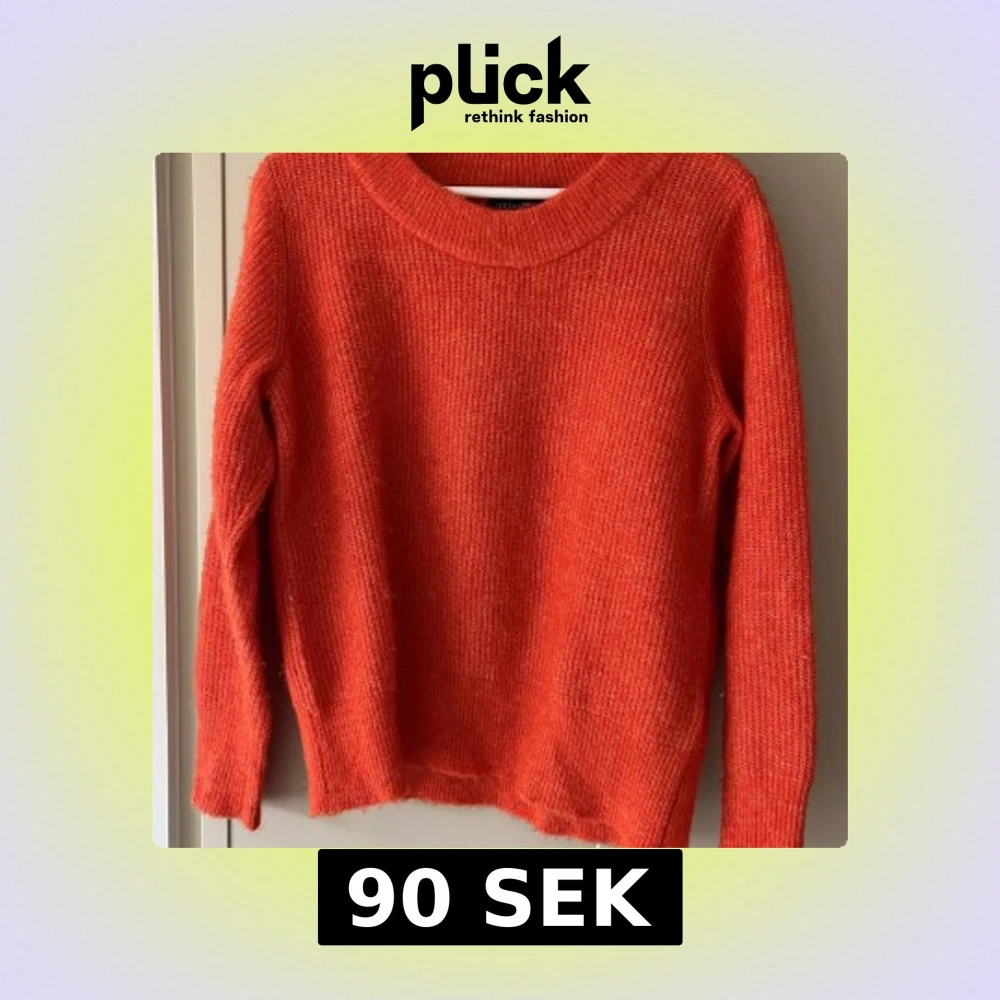 Säljer en härlig orange stickad tröja med rund halsringning. Tröjan är tillverkad av en blandning av alpacka och återvunnen polyester, vilket gör den både mjuk och hållbar. Perfekt för kyliga dagar!