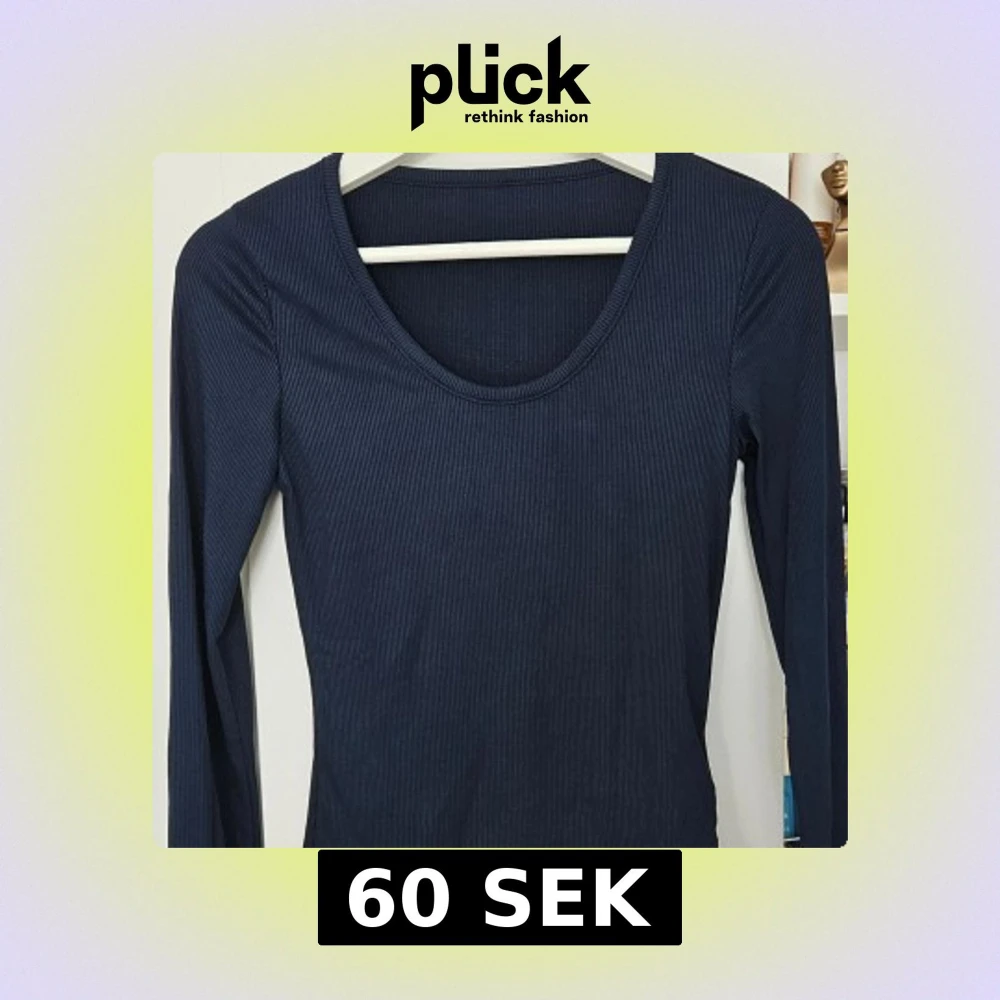 Säljer en mörkblå långärmad topp med rund halsringning. Tröjan är ribbad och har en tight passform, perfekt att styla till olika outfits. Enkel och stilren design som passar till mycket.
