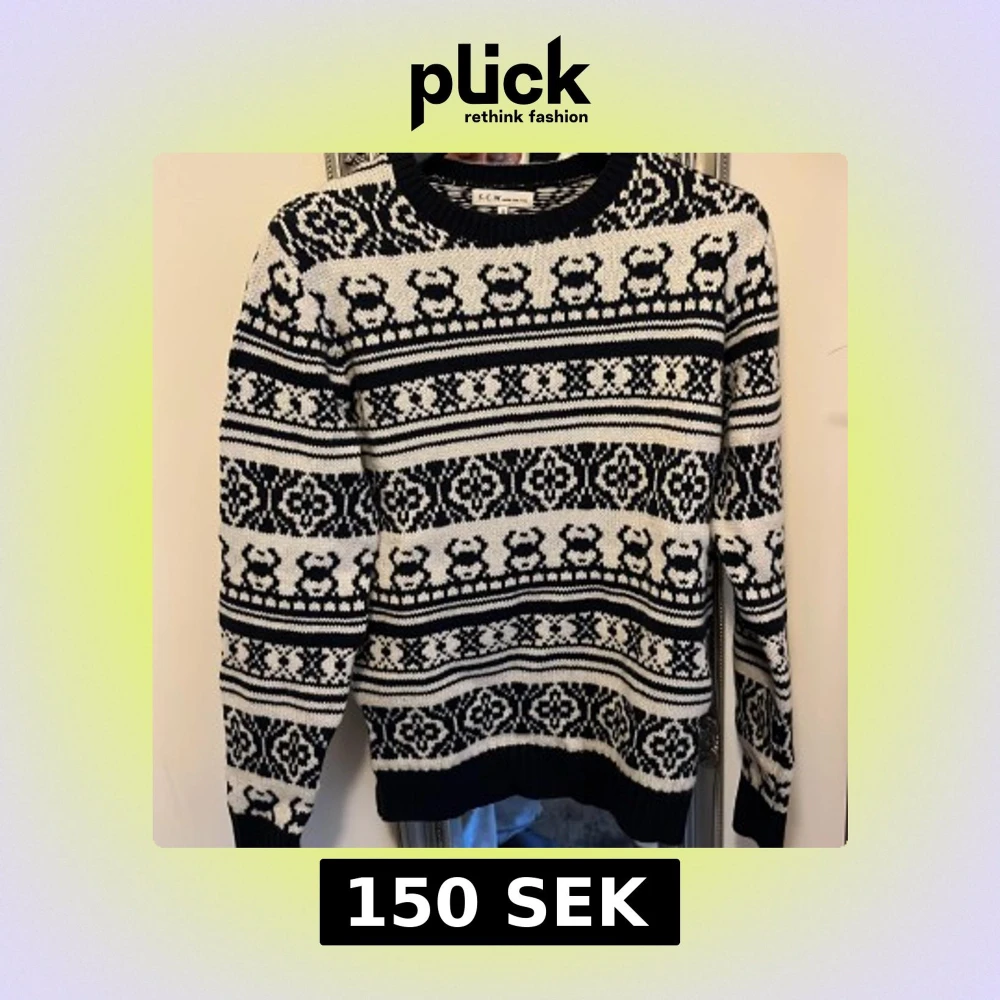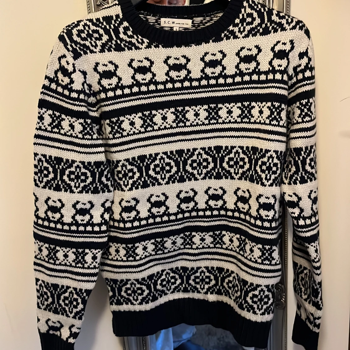 Stickad svartvit tröja från S.C.W med coolt mönster. Storlek S
