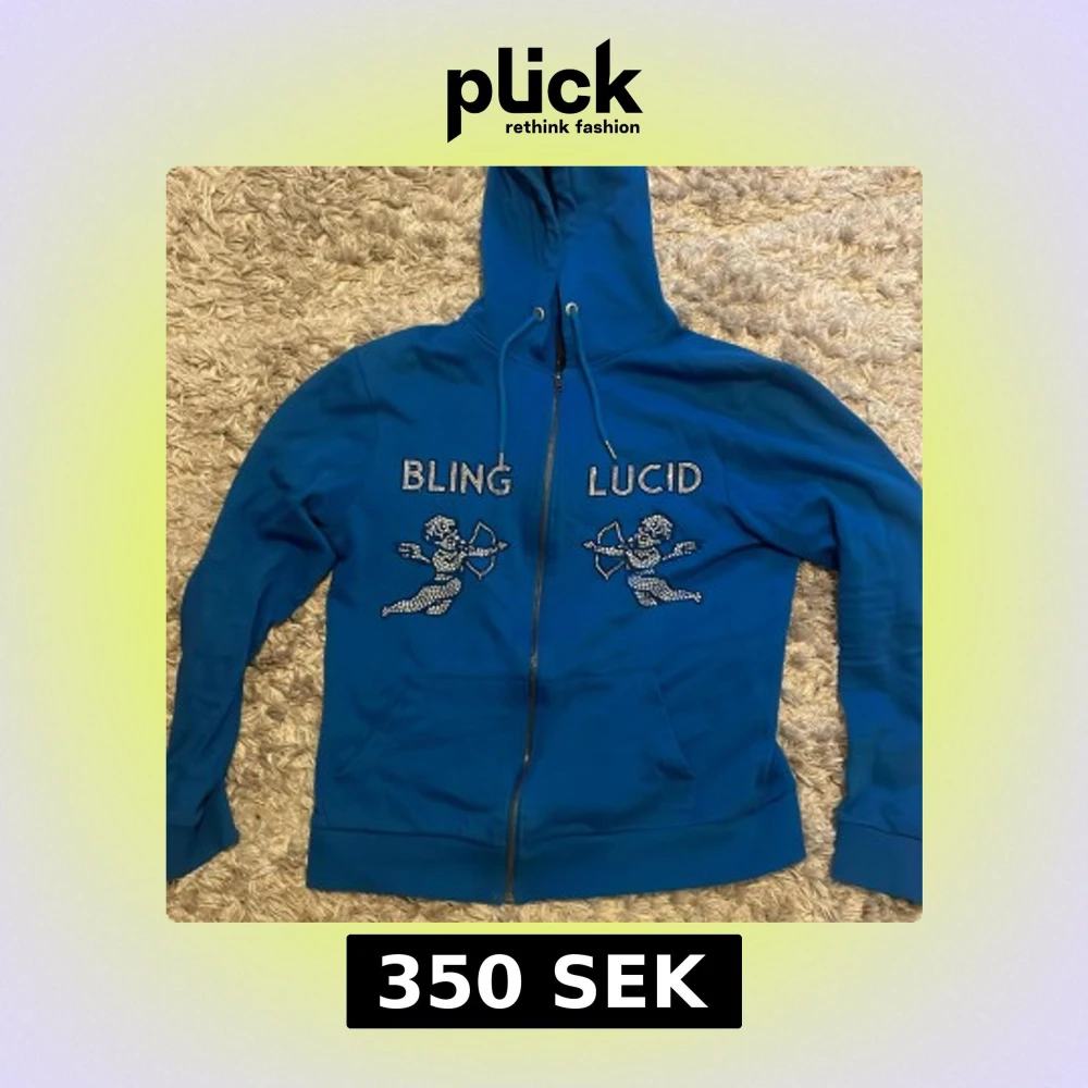 Snygg blå hoodie från Bling Lucid med glittrande stenar på bröstet och coola ängelmotiv. Tröjan har huva med snörning, dragkedja framtill och rymliga fickor. Perfekt för dig som gillar statement-plagg och vill sticka ut med lite extra bling.