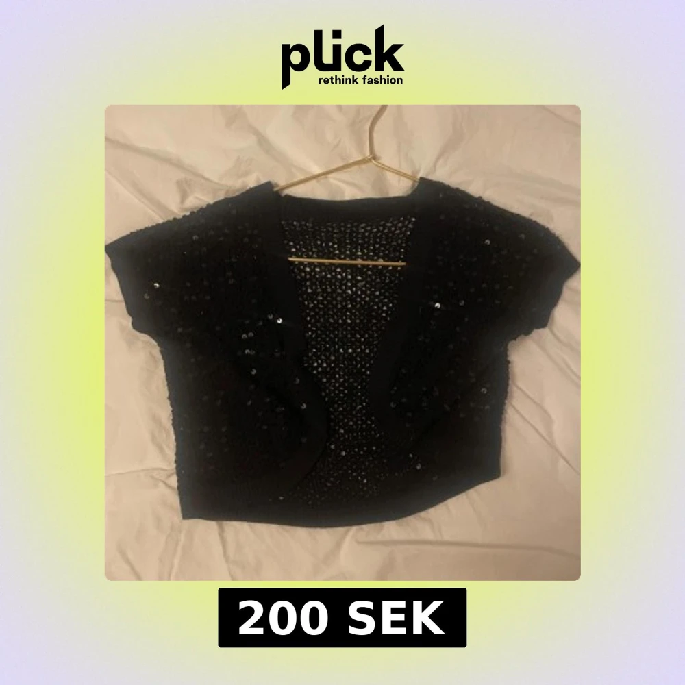 Snygg svart bolerotopp med glittrande paljetter. Perfekt för att lägga till lite glamour till din outfit. Kortärmad design som passar bra över klänningar eller toppar.