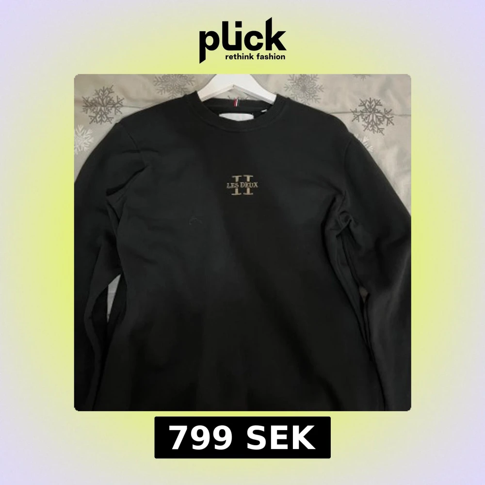 Snygg svart sweatshirt från Les Deux med deras logga i guld på bröstet. Tröjan har en klassisk rund hals och långa ärmar. Perfekt för en stilren och avslappnad look. Pris kan diskuteras!!