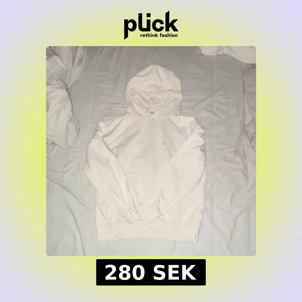 Säljer en stilren vit hoodie med huva och snörning. Tröjan har långärmade ärmar och ribbade muddar vid ärmslut och nederkant. Perfekt för chill dagar och enkel att matcha med jeans eller joggers.
