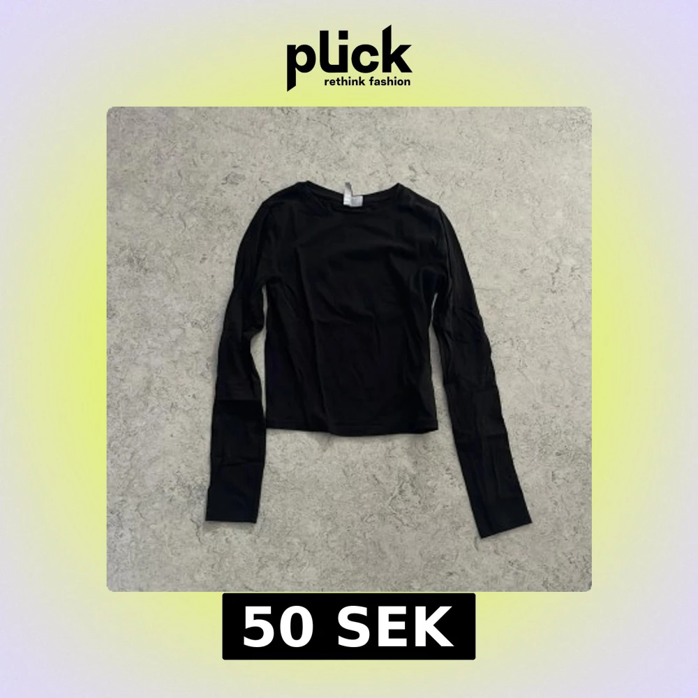 En svart långärmad topp från H&M Divided, enkel och stilren med rund halsringning. Modellen är figurnära och passar perfekt till lager-på-lager eller som basplagg. Tillverkad i mjuk bomullsmix för en bekväm känsla hela dagen. Kortare passform, inte magtröja, ungefär till naveln på mig som är 169 cm. Inga defekter, men har blivit tvättad flertal gånger.
