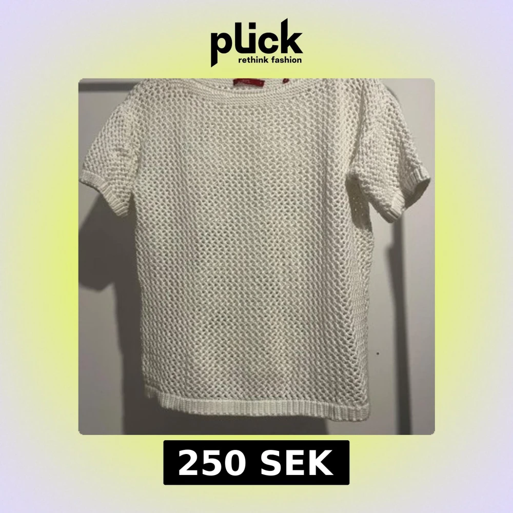 Säljer en vit stickad tröja med korta ärmar. Tröjan har ett fint, luftigt stickmönster som ger en skön och avslappnad känsla. Perfekt för vår och sommar!