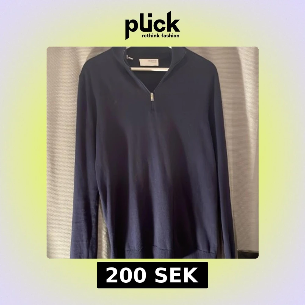 Snygg mörkblå tröja från Selected Homme med dragkedja vid halsen. Perfekt för en stilren look. Tröjan har långa ärmar och en enkel design som passar till många tillfällen.