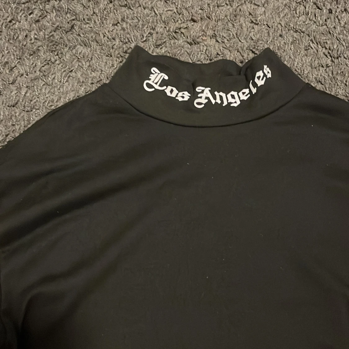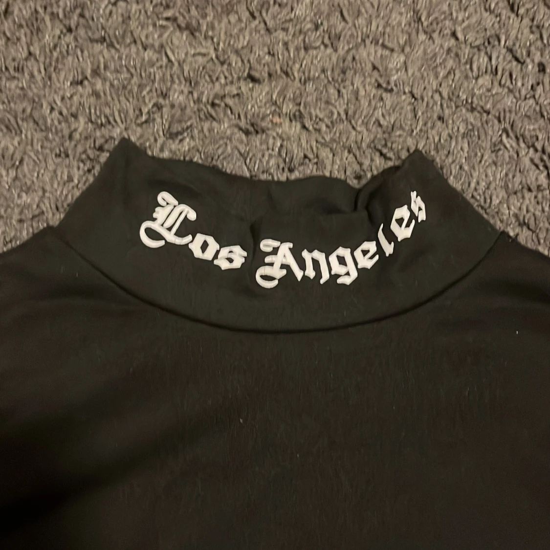 Svart polotröja med lång ärm och coolt 'Los Angeles' tryck i vitt på kragen. Tröjan har en clean och slim passform, perfekt för dig som gillar streetstyle. Materialet känns mjukt och stretchigt, vilket gör den skön att bära hela dagen.