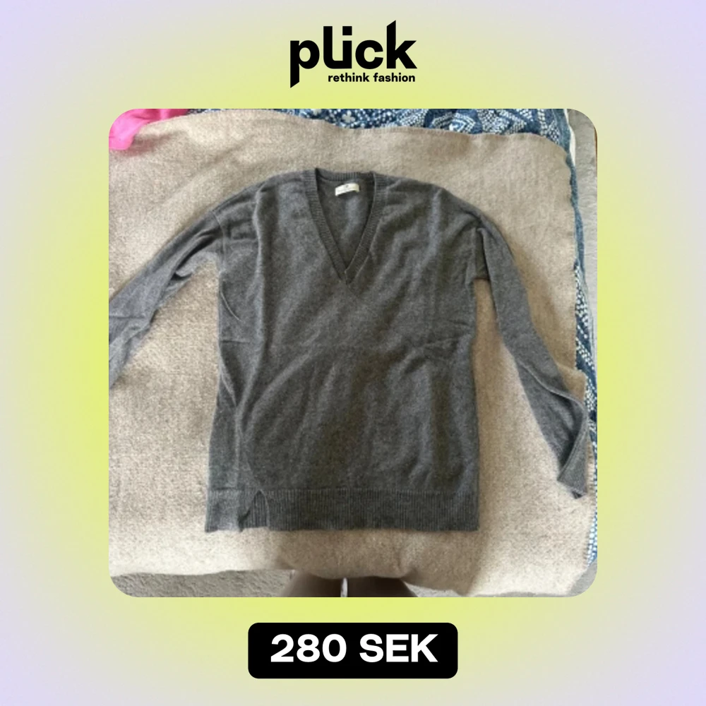 Säljer en supermjuk och stilren grå kashmirtröja med v-ringning. Perfekt för både vardag och lite finare tillfällen.