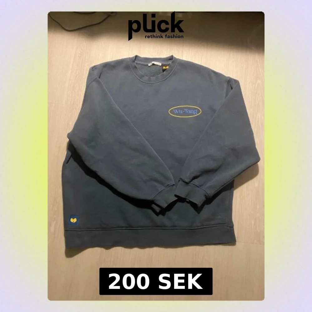 Cool svart sweatshirt från Zara med gul och blå logga på bröstet och stort tryck på ryggen med texten 'Wu-Tang Forever'. Tröjan har rund hals, långa ärmar och ribbade muddar. Perfekt för dig som gillar streetwear och hiphop.