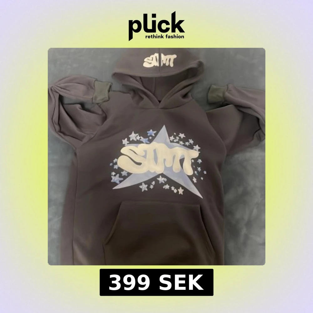 Snygg grå hoodie med en stor stjärna och texten 'SMT' i vitt på framsidan. Hoodien har en rymlig ficka framtill och en bekväm huva med samma textdetalj. Perfekt för en avslappnad stil.