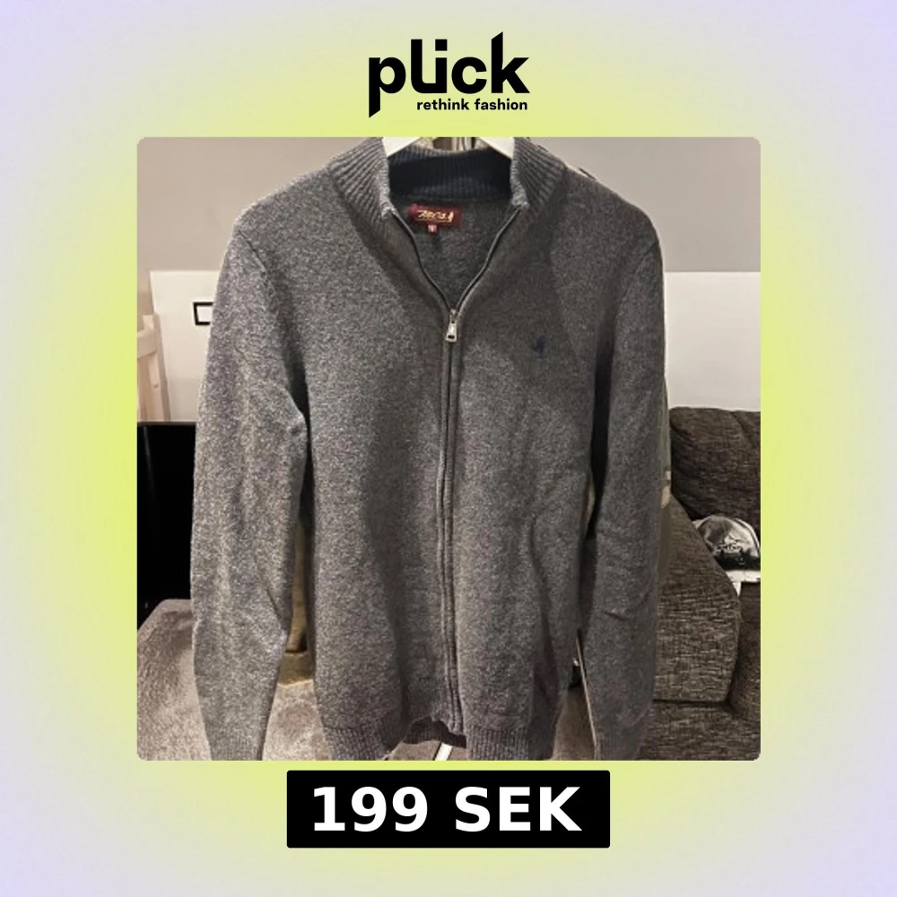 Säljer en stilren grå kofta från MCS med dragkedja och ribbad krage. Perfekt för kyligare dagar och enkel att matcha med olika outfits.