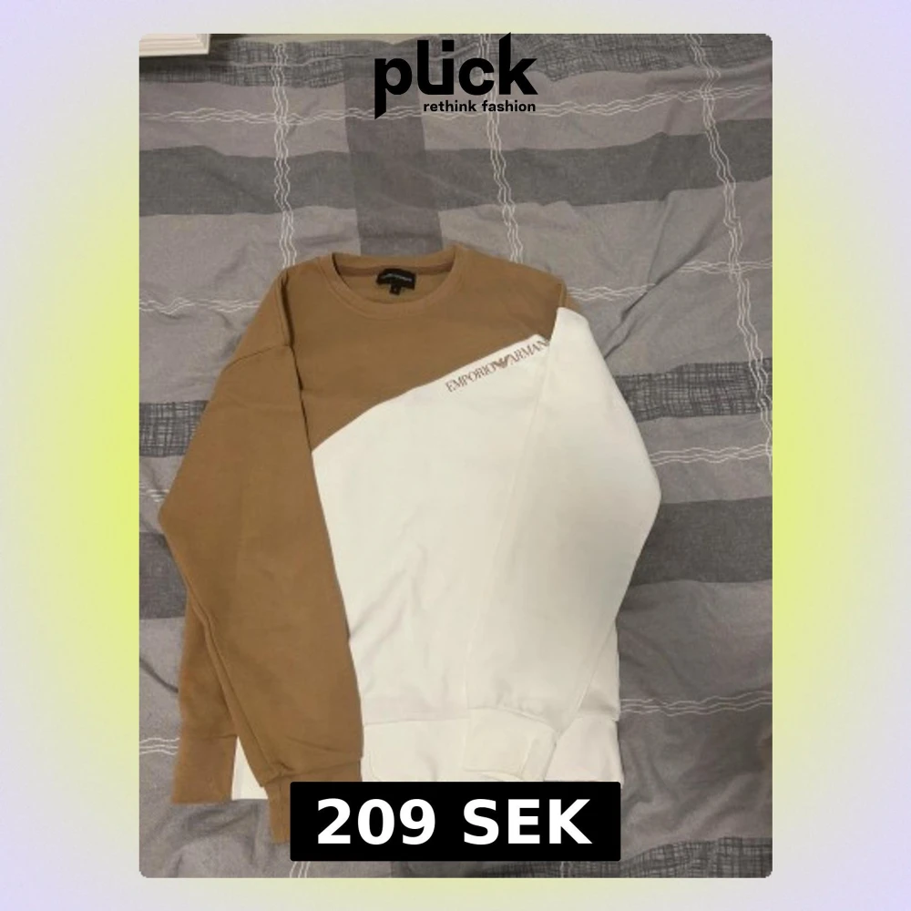 Lägg bud så priset kan diskuteras. Säljer en beige och vit tröja från Emporio Armani i storlek S. Den sitter bra och är knappt änvänd.