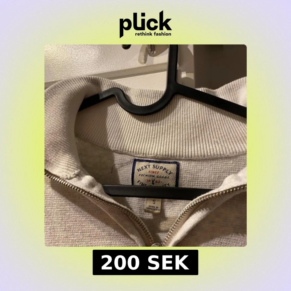 Säljer en beige tröja från Next Supply med half zip och hög krage. Tröjan är i bomullsmix och har en avslappnad passform med ribbade muddar vid ärmslut och nederkant. Perfekt för lager-på-lager under kyliga dagar.
