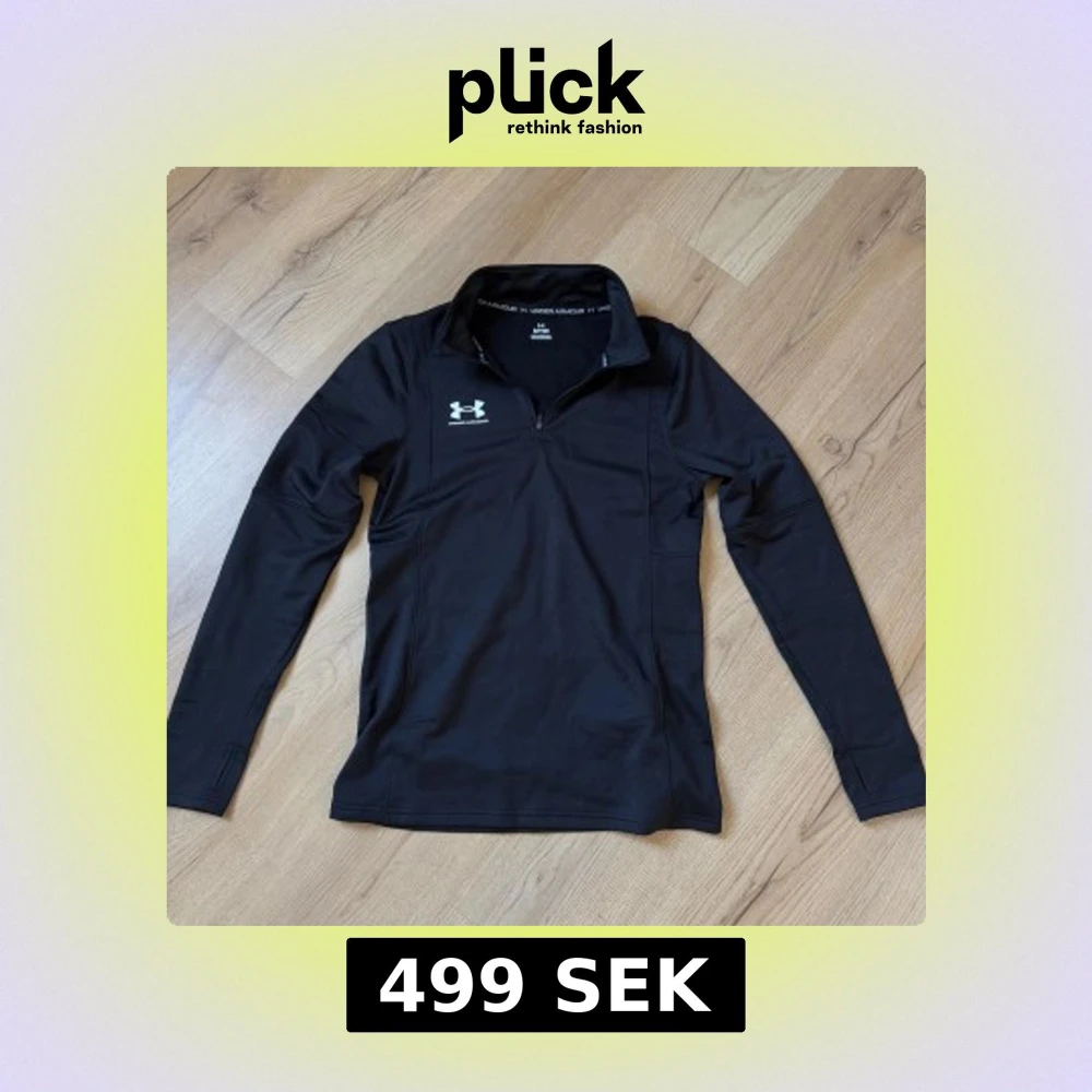 Svart långärmad träningströja från Under Armour med halv dragkedja och hög krage. Perfekt för träning eller löpning. Logga på bröstet och smidig passform som ger bra rörelsefrihet.