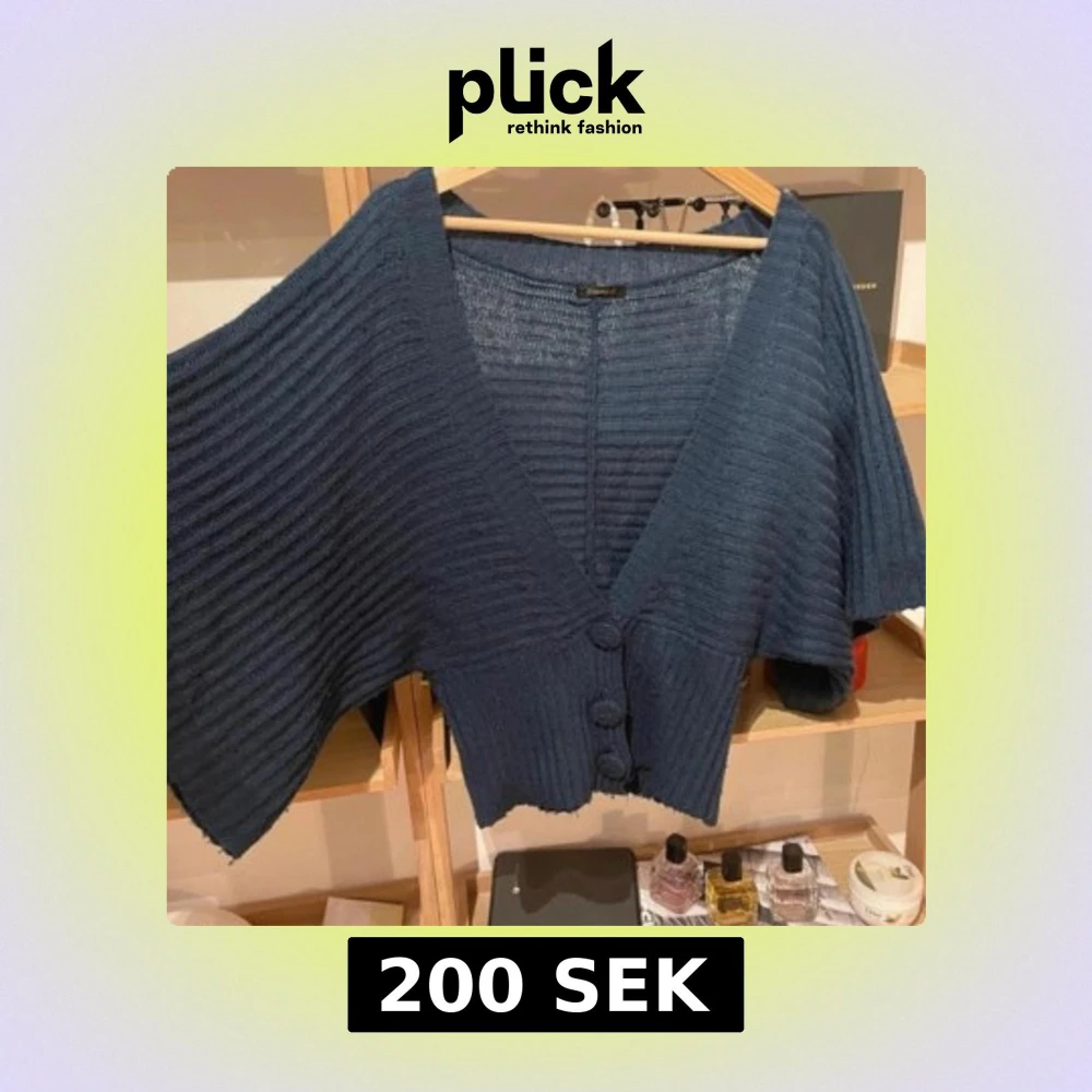 Säljer en snygg mörkblå kofta från Reserved. Den är ribbad med stora knappar framtill och har en v-ringad design. Perfekt för att hålla sig varm och stilren. Passar till många olika outfits!