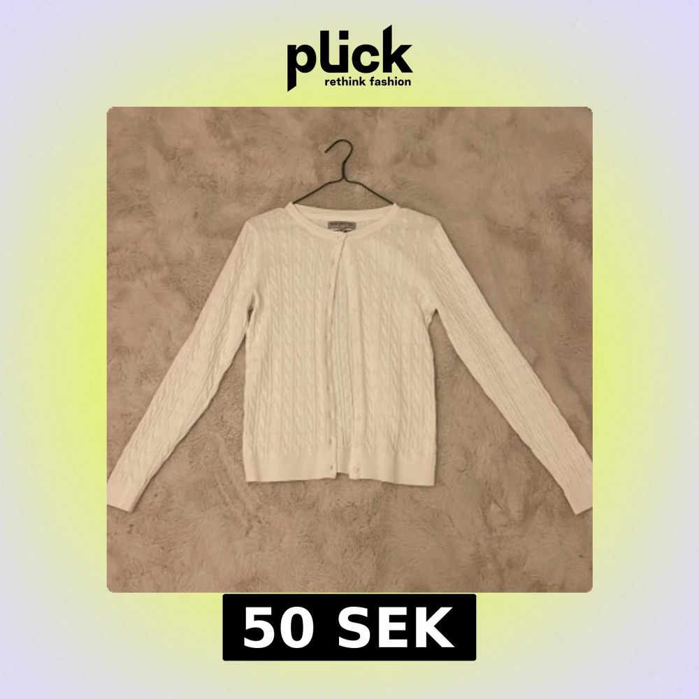 Säljer en stilren vit kabelstickad kofta från Basic You i ekologisk bomull. Koftan har långa ärmar och knäppning framtill, perfekt för en klassisk look. Passar bra till både jeans och kjol. 🌟