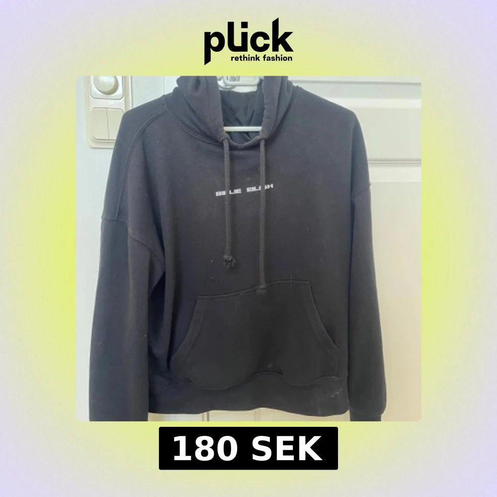 Svart hoodie från H&M Divided med Billie Eilish-tryck framtill och en stor blå och vit grafisk print på ryggen. Tröjan har huva med snörning. Bara använd några gånger.